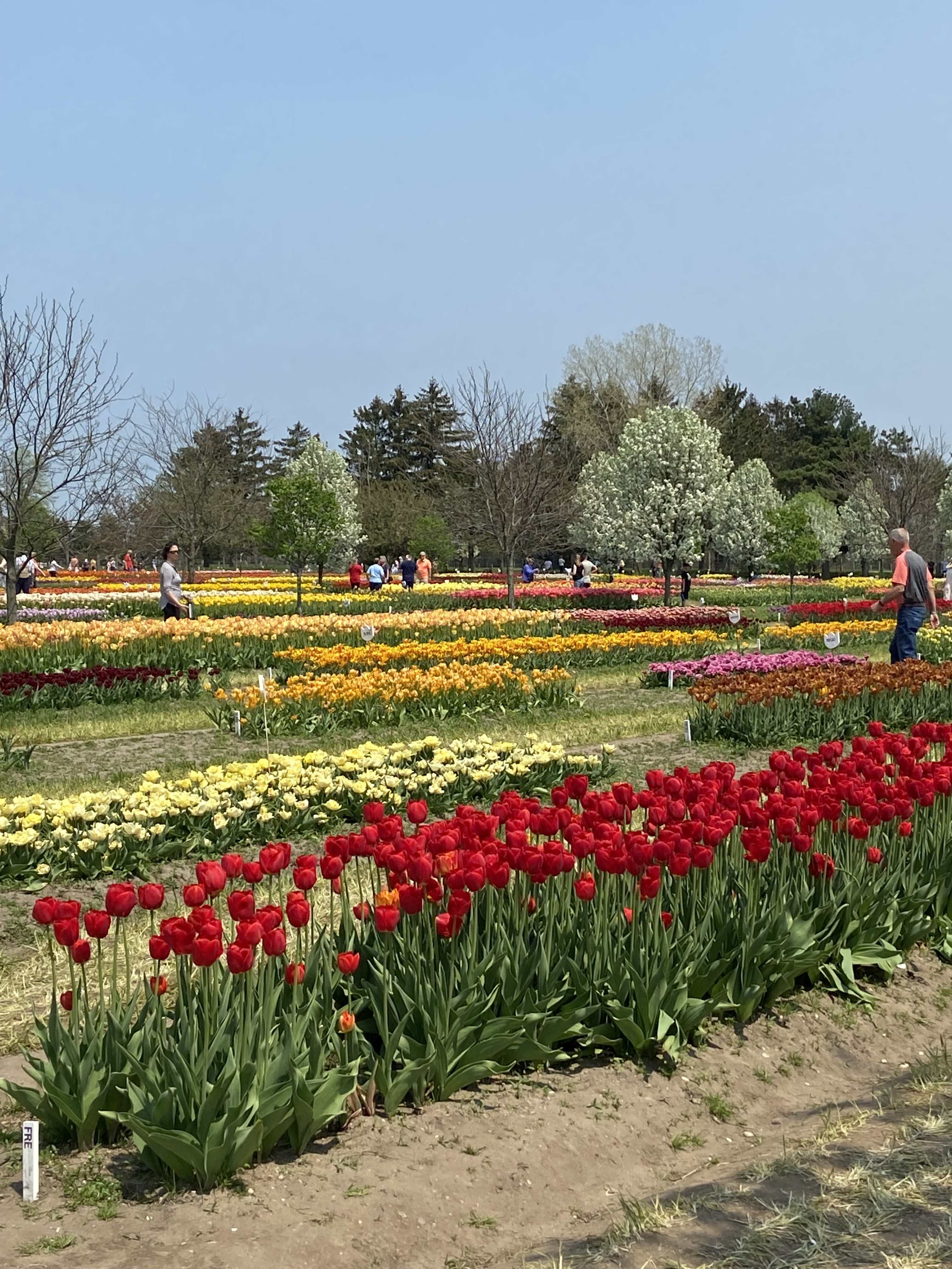 We have been concerned we would miss the tulip bloom in Holland, but we made it in time! Our first stop; tulip display fields:
