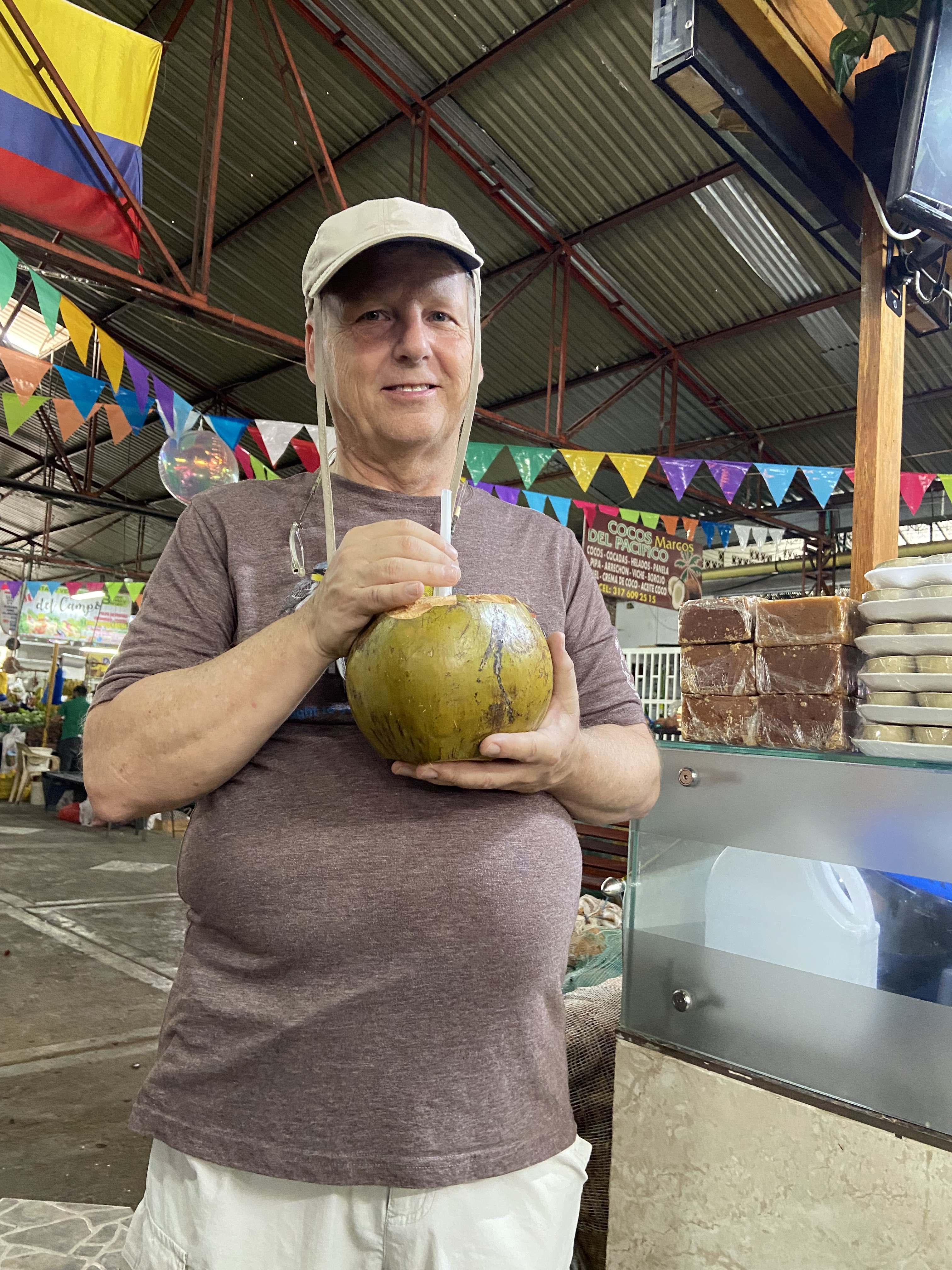 The next day we went to the famous Cali outdoor market. We bought several exotic fruits to take back to the apartment and drank coconut water.