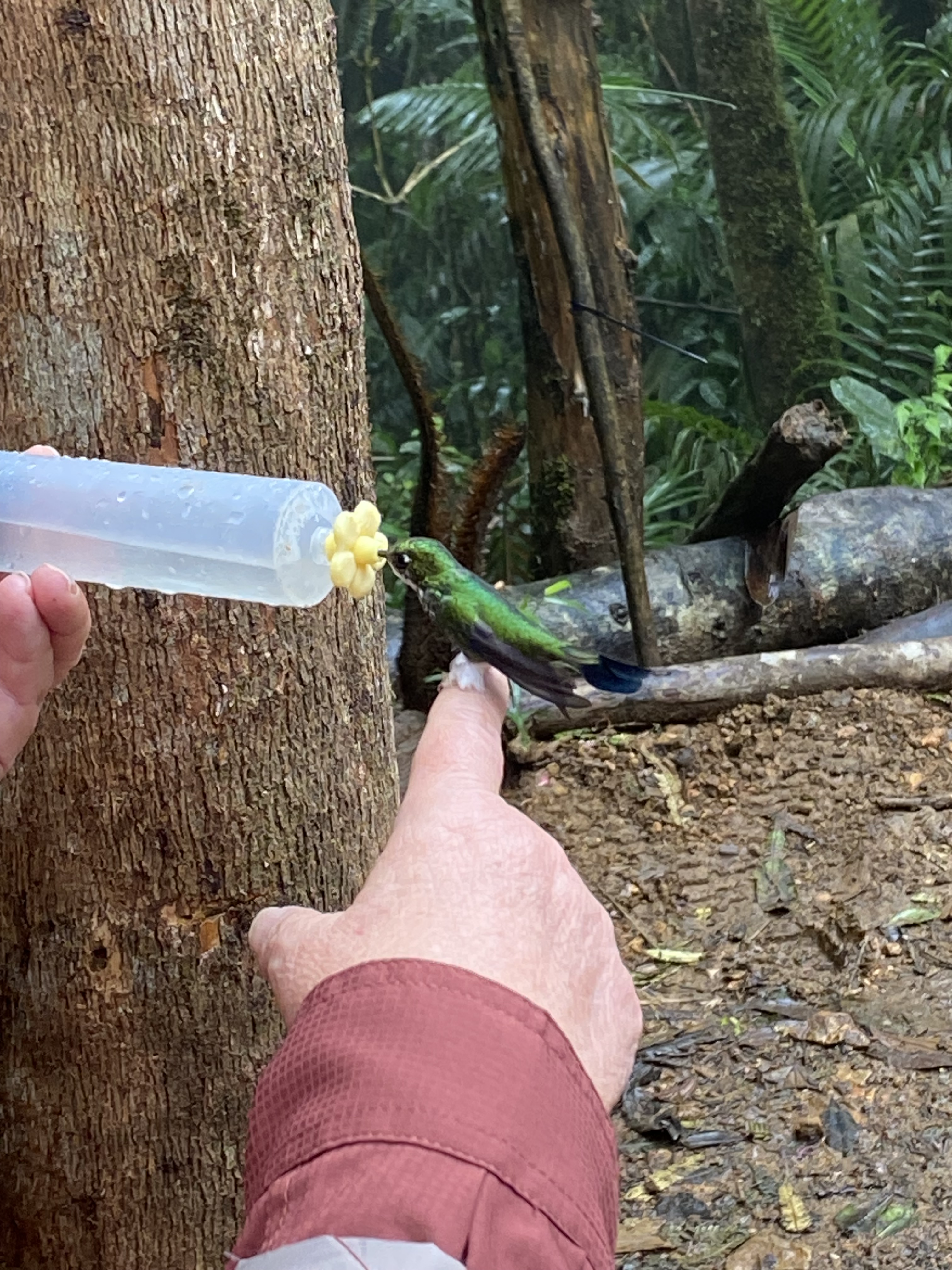 After lunch, we headed to the tinamu feeder where Nester (the bird guide) puts out food and calls in the birds every day at 2:00PM. Three species not commonly seen in Colombia will come down to get their afternoon snack when they want to (not everyday of course, they aren’t exactly pets!)