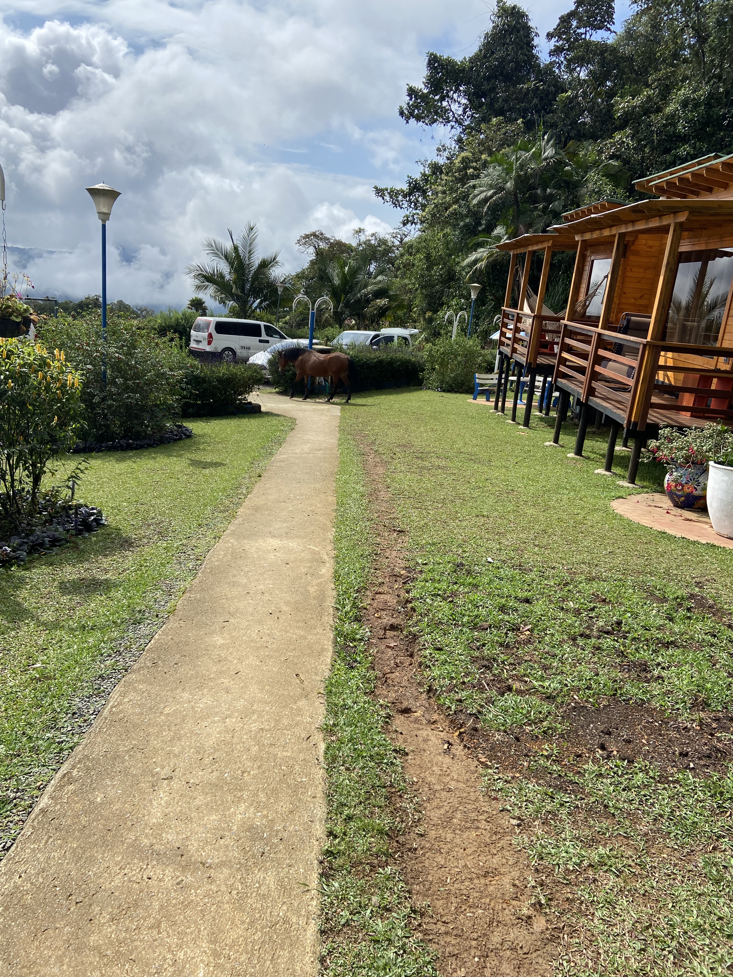 La Florida is set at about 6,000 feet above sea level. It is perched on a hill with cloud forest in the background – just enough to attract the most amazing wildlife but still allow for more than a few human creature comforts . It also has a marvelous view of the pretty little farms and estates surrounding it.